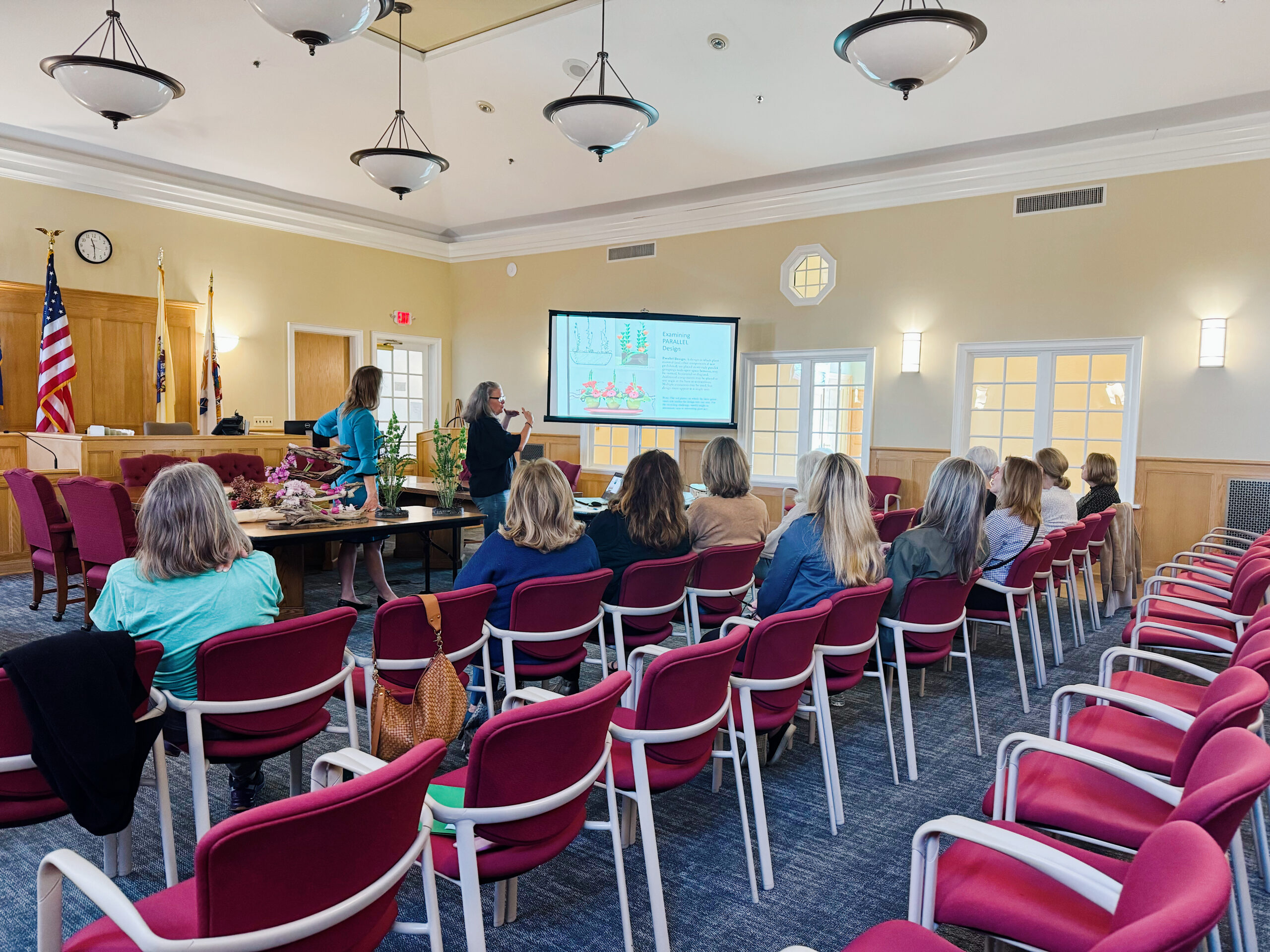 We had a lovely time at Rumson Bingham Hall for an informative and creative lesson in flower arranging. Focusing on the mason jar arrangement design for our upcoming September meeting…